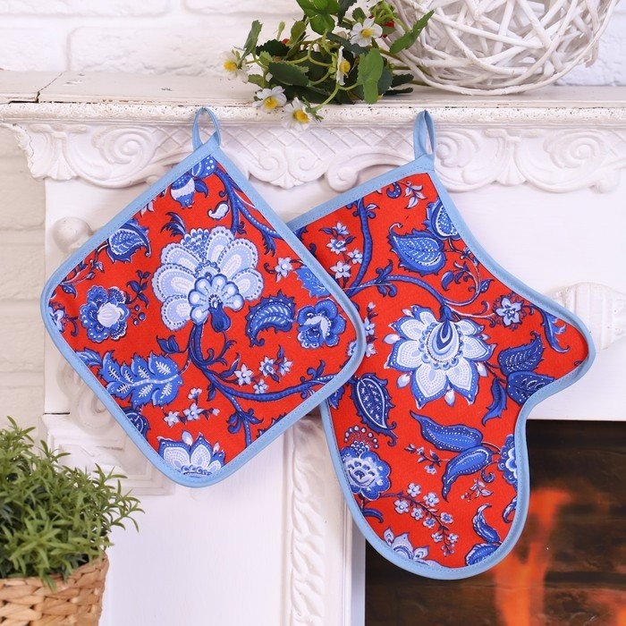 Набор кухонный (Варежка 26*30 см+прихватка 18*18 см) «Узор терракотовый», рогожка, хл 100%