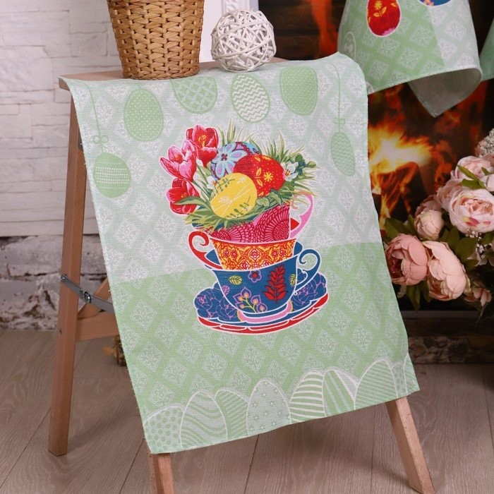 Полотенце 45×60 см, Пасхальное дерево (рис.1), вафля, 170 гр/м2, хлопок 100%
