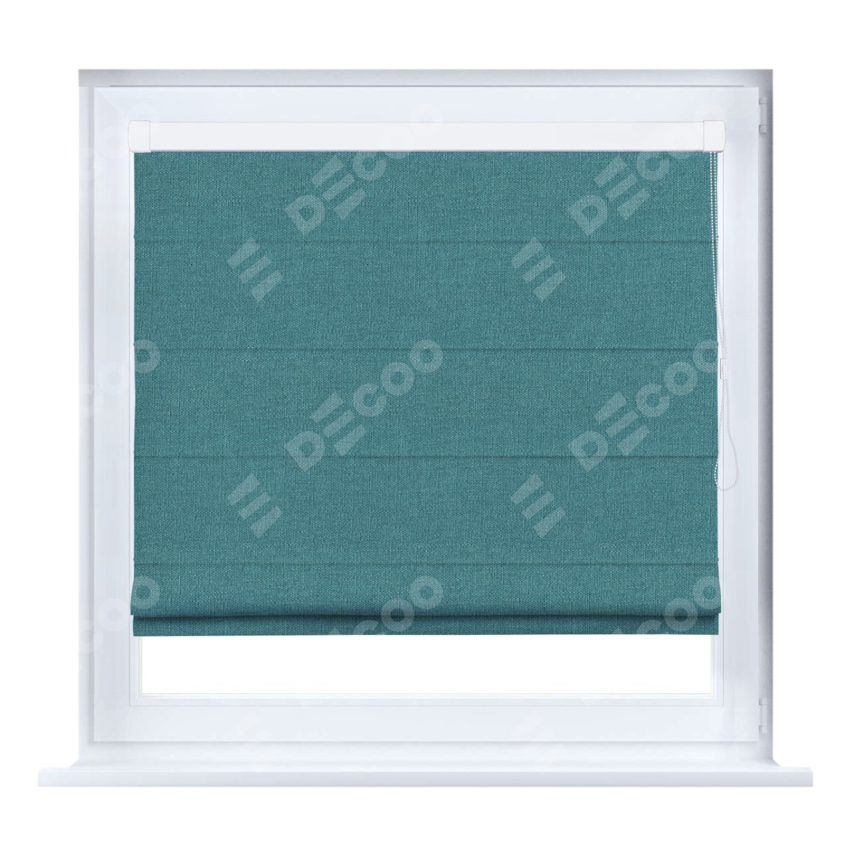 Римская штора кассетного типа, производителя «Cortin», устанавливается только на пластиковые окна и прилегает к стеклопакету, пошита из ткани лён бирюзовый, артикул 53436.