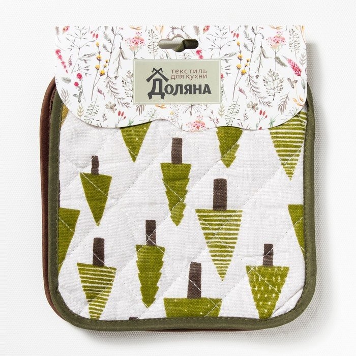 Набор Доляна, прихватка 2шт Хвойный лес/Зигзаг корич, 100%пэ, рогожка 200 гр/м