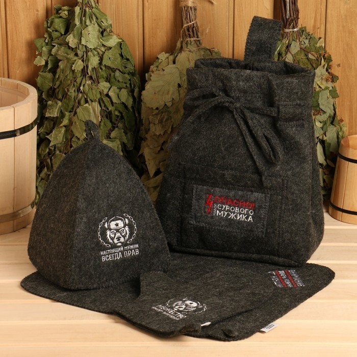 Набор для бани 4 предмета «Набор сурового мужика» шапка, коврик, рукавица, портфель