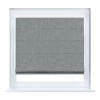 Римская штора кассетного типа, производителя «Cortin», устанавливается только на пластиковые окна и прилегает к стеклопакету, пошита из ткани рогожка димаут тёмно-серый, артикул 80418.
