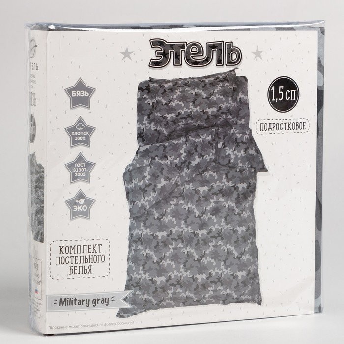 Постельное бельё Этель 1,5 сп «Military gray» 143×215 см, 150×214 см, 50×70 см -1 шт, 100% хлопок, бязь
