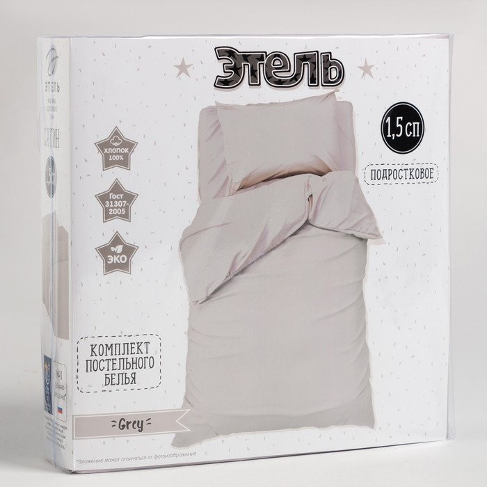Постельное бельё Этель 1,5 сп «Grey» 143×215 см, 150×214 см, 50×70 см -1 шт, 100% хлопок, сатин