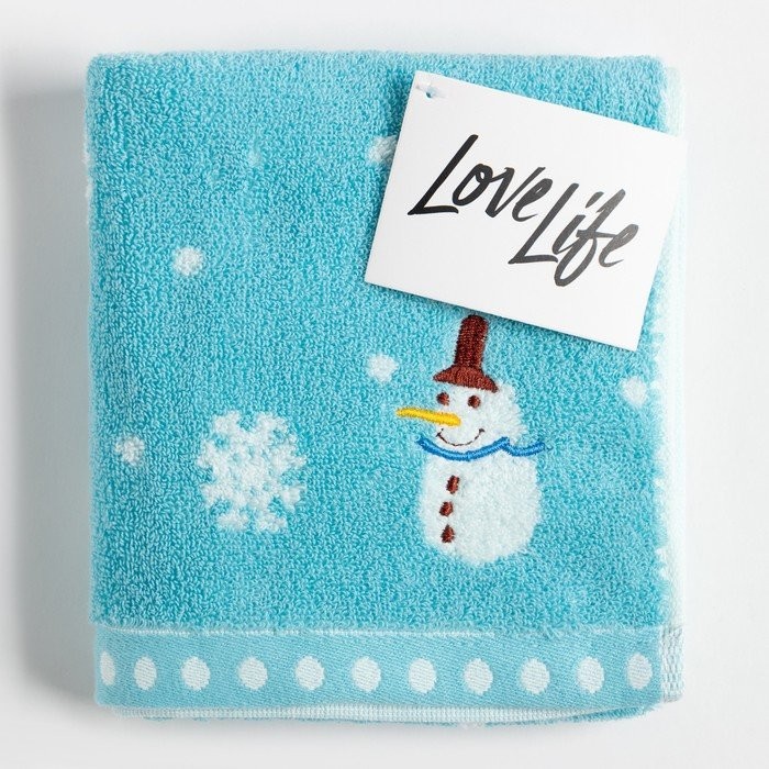 Полотенце махровое LoveLife «Снеговик» 35*75±3 см, цв.голубой, 100% хлопок, 350 г/м2