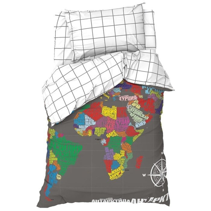 Постельное бельё Этель 1,5 сп «Карта мира» 143×215 см, 150×214 см, 50×70 см -1 шт, 100% хлопок, бязь