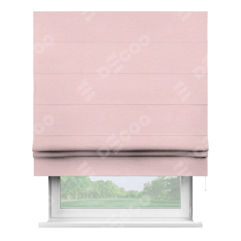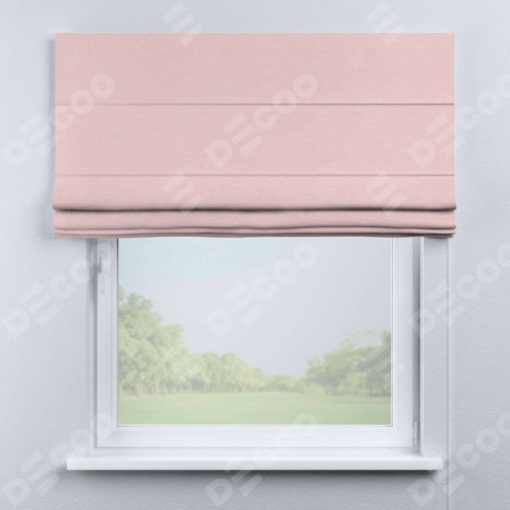 Римская штора производителя «Cortin», используется для проёма, пошита из ткани блэкаут однотонный розовый, артикул ткани 83046. Имеет универсальный механизм и подходит для монтажа: на потолок, на стену и в нишу.