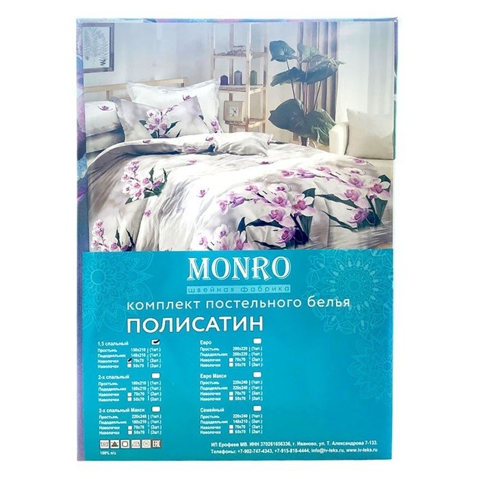 Постельное бельё Monro Евро 200×210, 200×210, 70х70см 2шт полисатин 80г/м, пэ100%