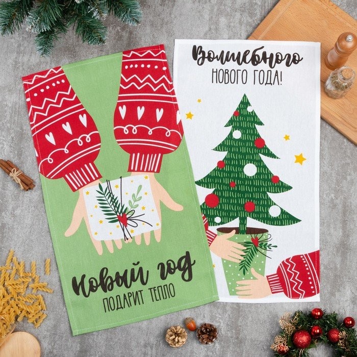 Набор кух.полотенец «Доляна» Тепло Нового года 35×60 см-2шт., 100% хлопок, 160 г/м2
