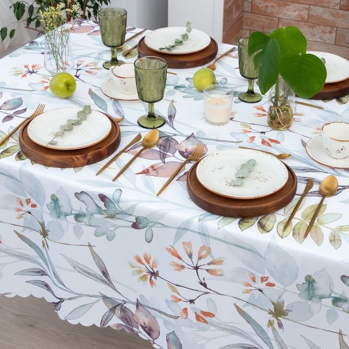 Скатерть Доляна «Акварельные листья» 145×220 см, 100% п/э