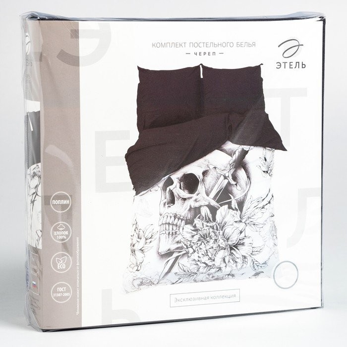 Постельное бельё Этель 2 сп «Череп» 175×215 см, 200×220 см, 70×70 см — 2 шт