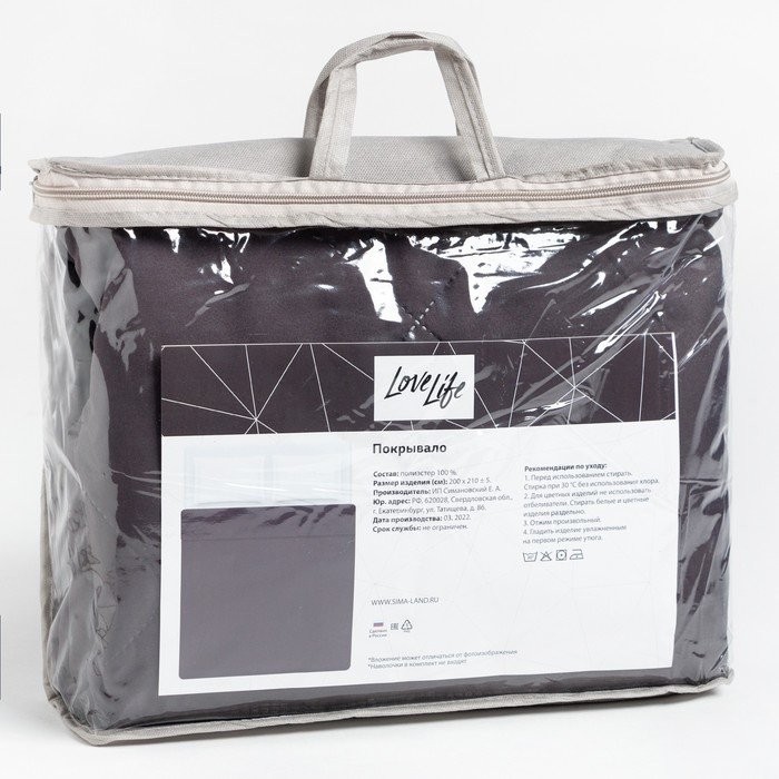 Покрывало LoveLife 1,5 сп 150×210±5 см, цвет темно-серый, микрофайбер, 100% п/э