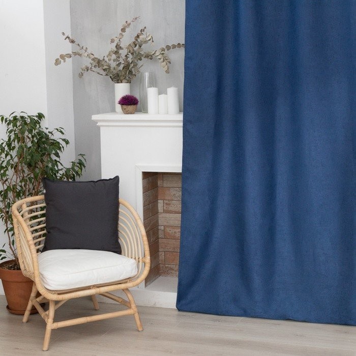 Штора портьерная Этель «Классика», цвет синий, на шторной ленте, 145×265 см, 100% п/э