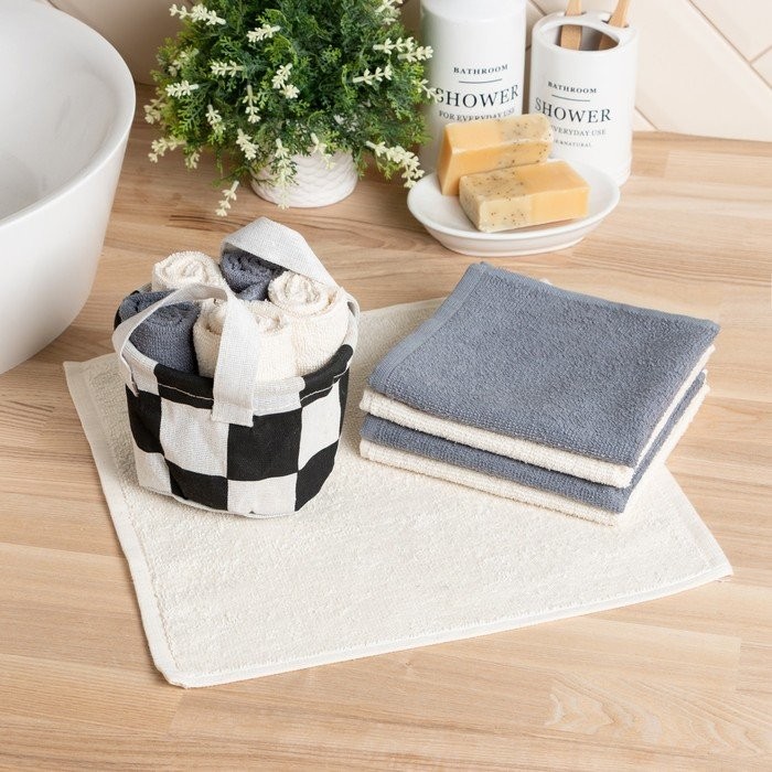 Набор салфеток махровых универсальных в корзинке Этель «Клетка» 30*30см-5шт,100% хл,340г/м2