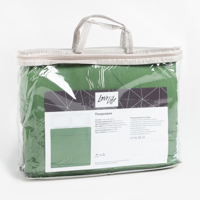 Покрывало LoveLife Евро 200×210±5 см, цвет зелёный, микрофайбер, 100% п/э