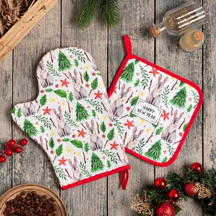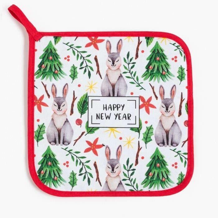 Набор кух. «Happy New Year» варежка-прихватка 20×28 см, прихватка 19×19 см, 100% хл