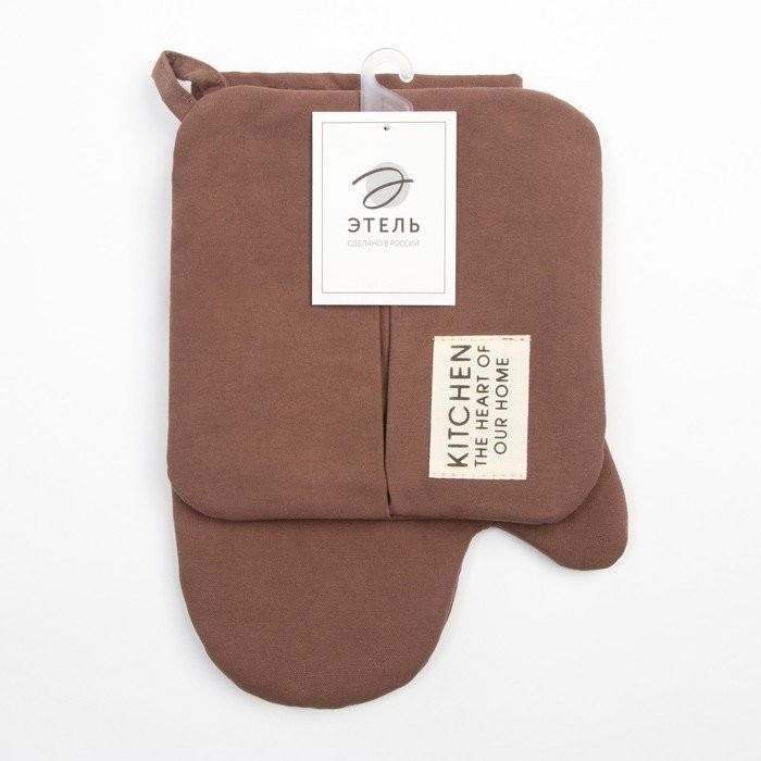 Набор кух. Этель Kitchen, цв. коричневый, варежка-прихватка 18×29 см, прихватка 19×19 см