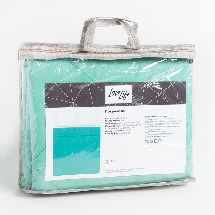 Покрывало LoveLife 2 сп 180×210±5 см, цвет мятный, микрофайбер, 100% п/э