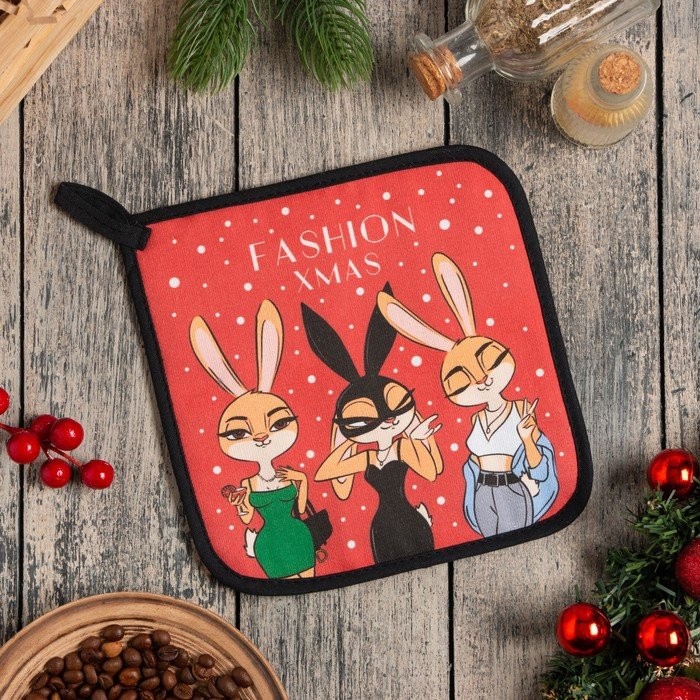 Прихватка «Fashion xmas» 19×19 см, саржа, 100% х/л, ватин 250 г/м2