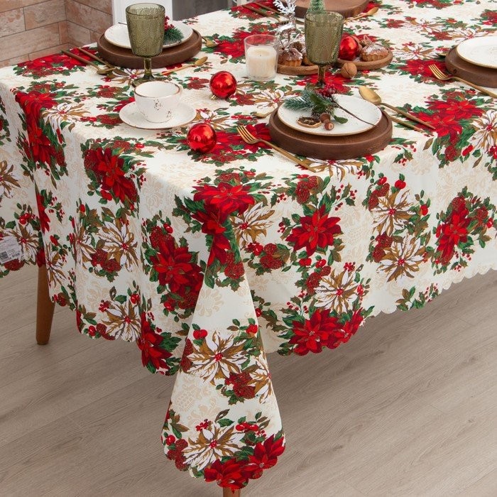 Скатерть Доляна «Новогодние украшения» 145×220 см, 100% п/э