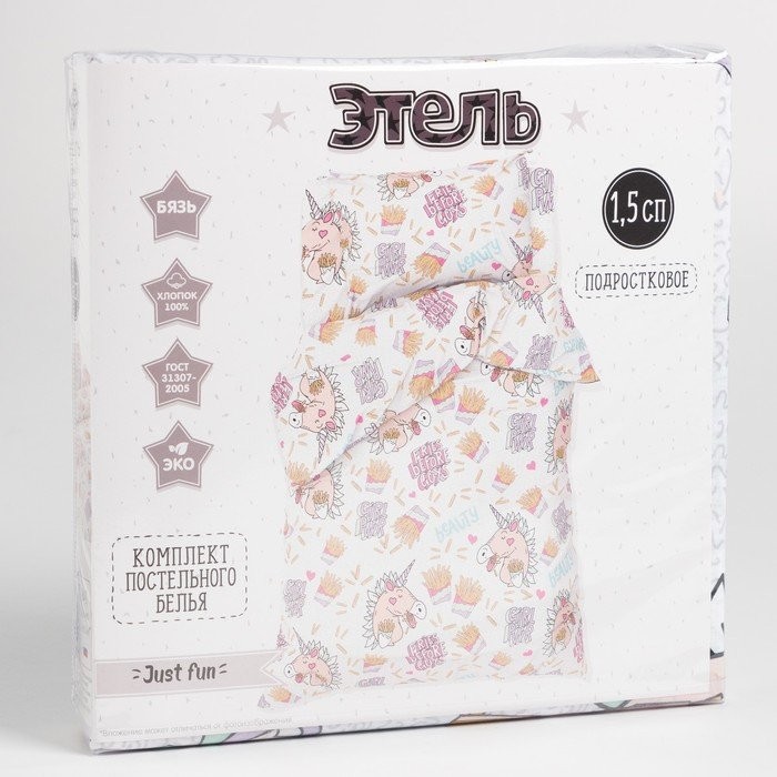 Постельное бельё Этель 1,5 сп «Just fun», 143×215 см, 150×214 см, 50×70 см -1 шт, 100% хлопок, бязь