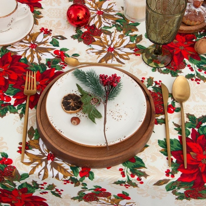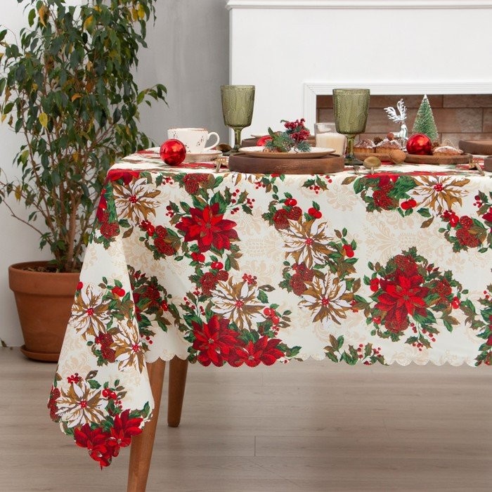 Скатерть Доляна «Новогодние украшения» 145×260 см, 100% п/э