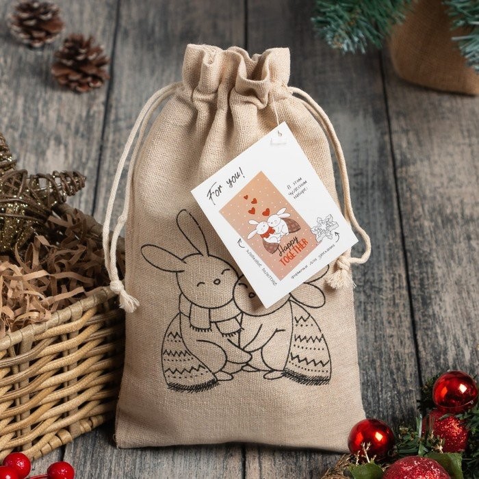 Набор в мешочке Этель Happy together: полотенце 40×73 см, формочки для запекания — 3 шт.