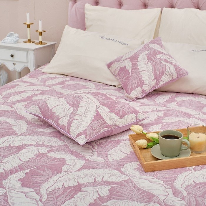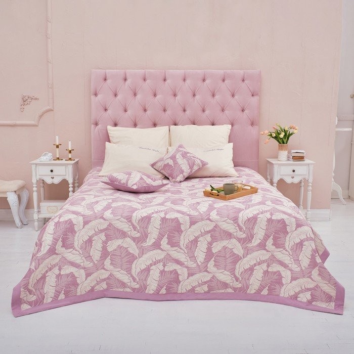 Покрывало хлопковое Этель «Перья» 220×240 см, цвет фиолетовый, 100% хлопок, 300гр/м2