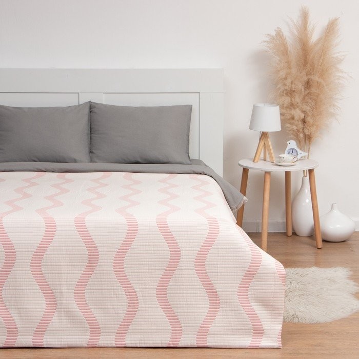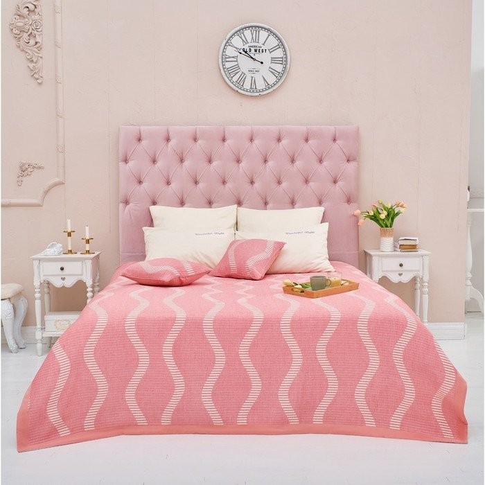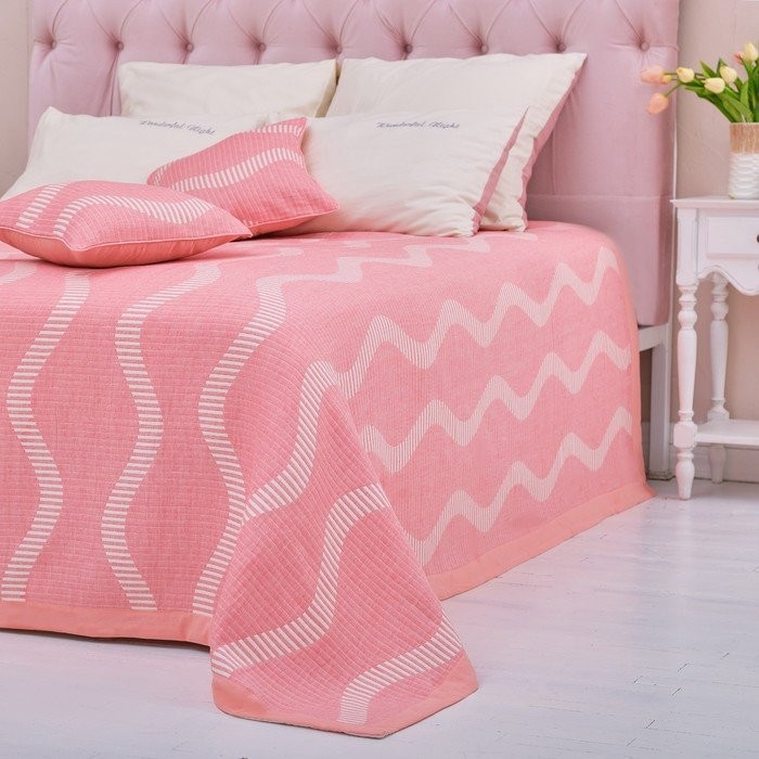 Покрывало хлопковое Этель «Волны» 150×240 см, цвет розовый, 100% хлопок, 300гр/м2