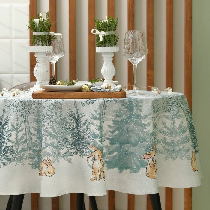 Скатерть «Этель» Winter mood d=220 см +/-3 см с ГМВО, 100% хл, саржа 190г/м2