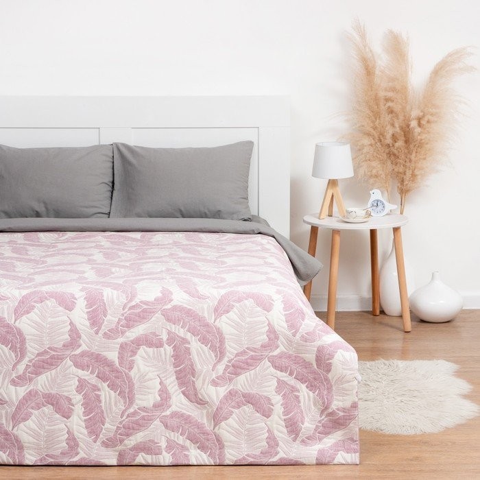 Покрывало хлопковое Этель «Перья» 180×240 см, цвет фиолетовый, 100% хлопок, 300гр/м2