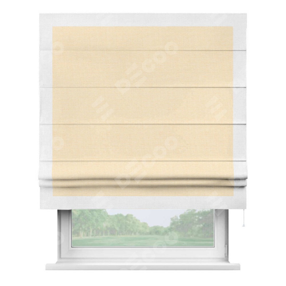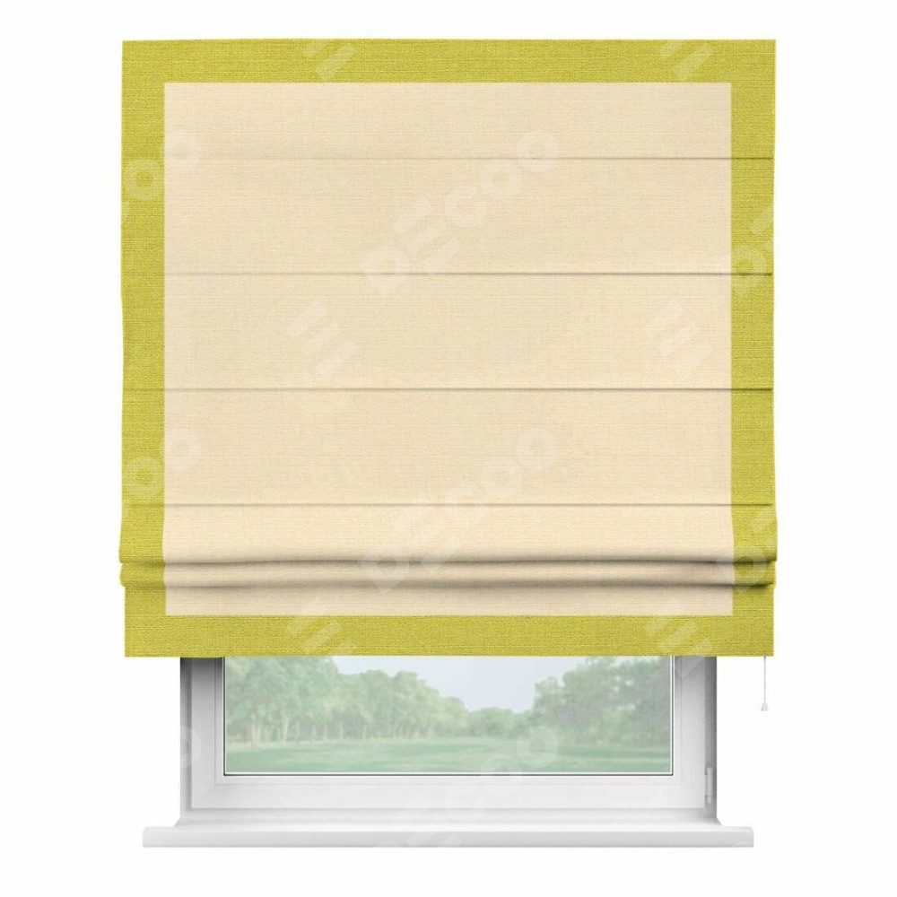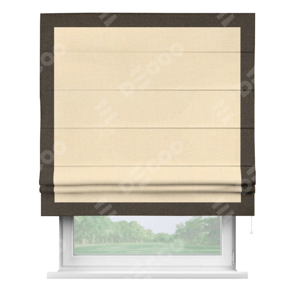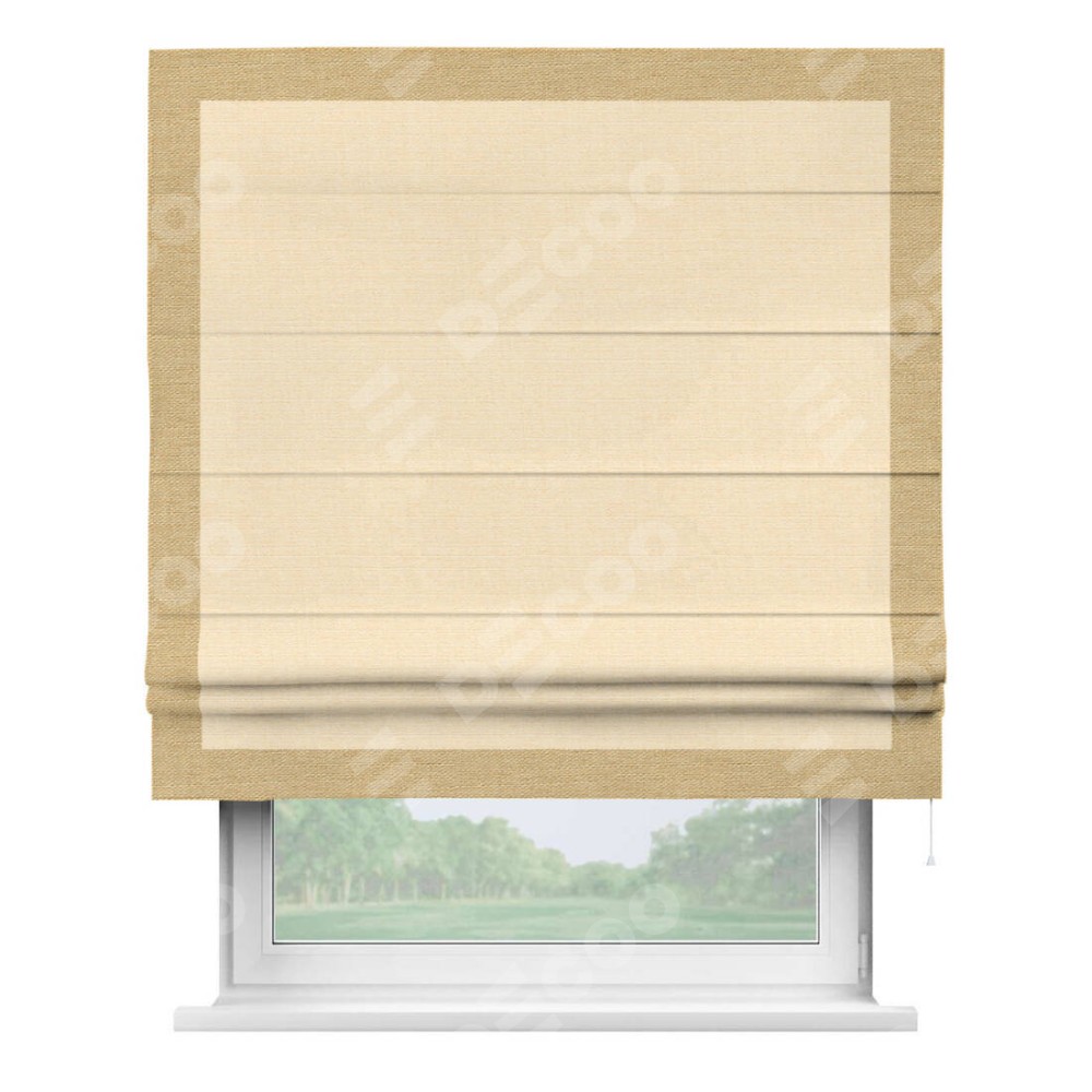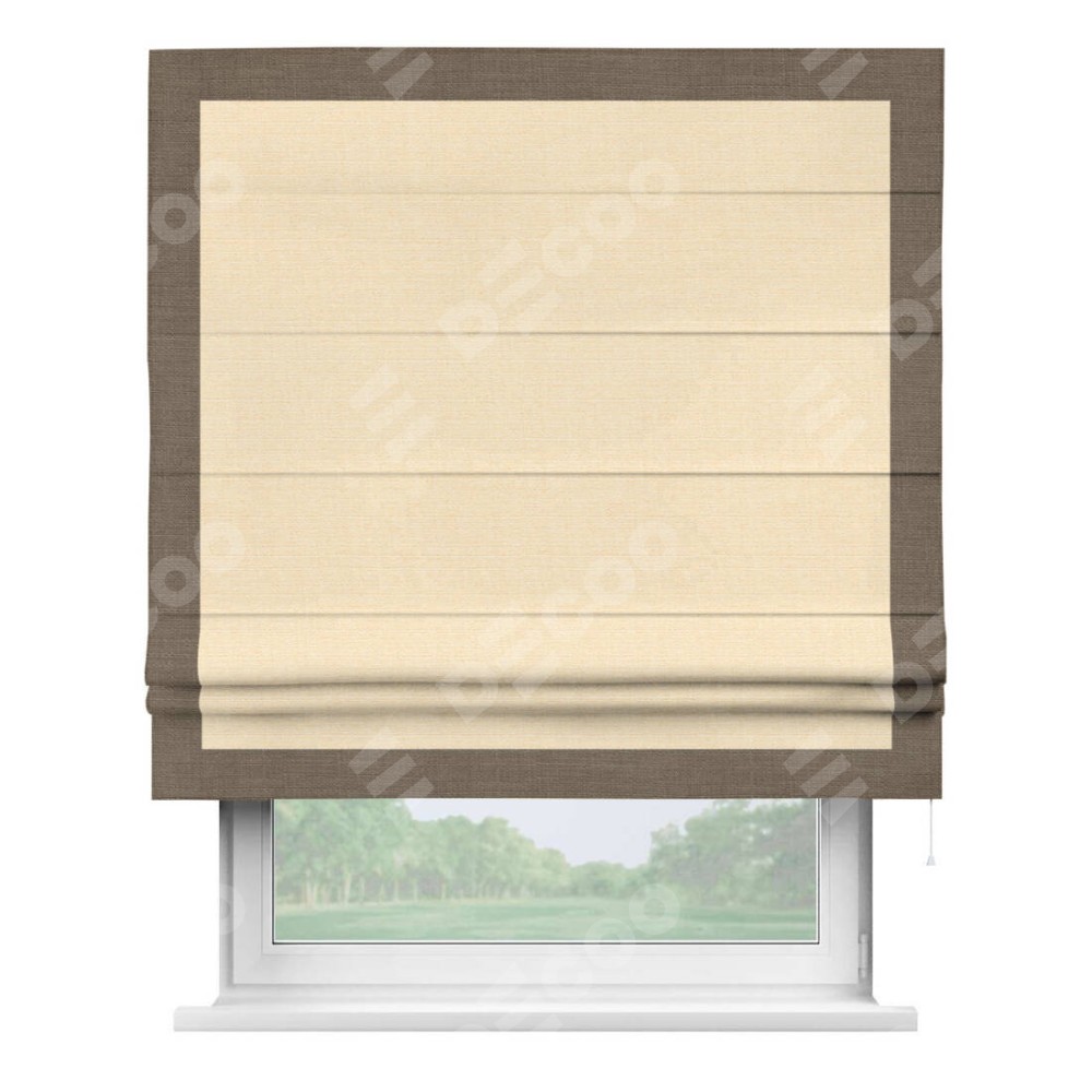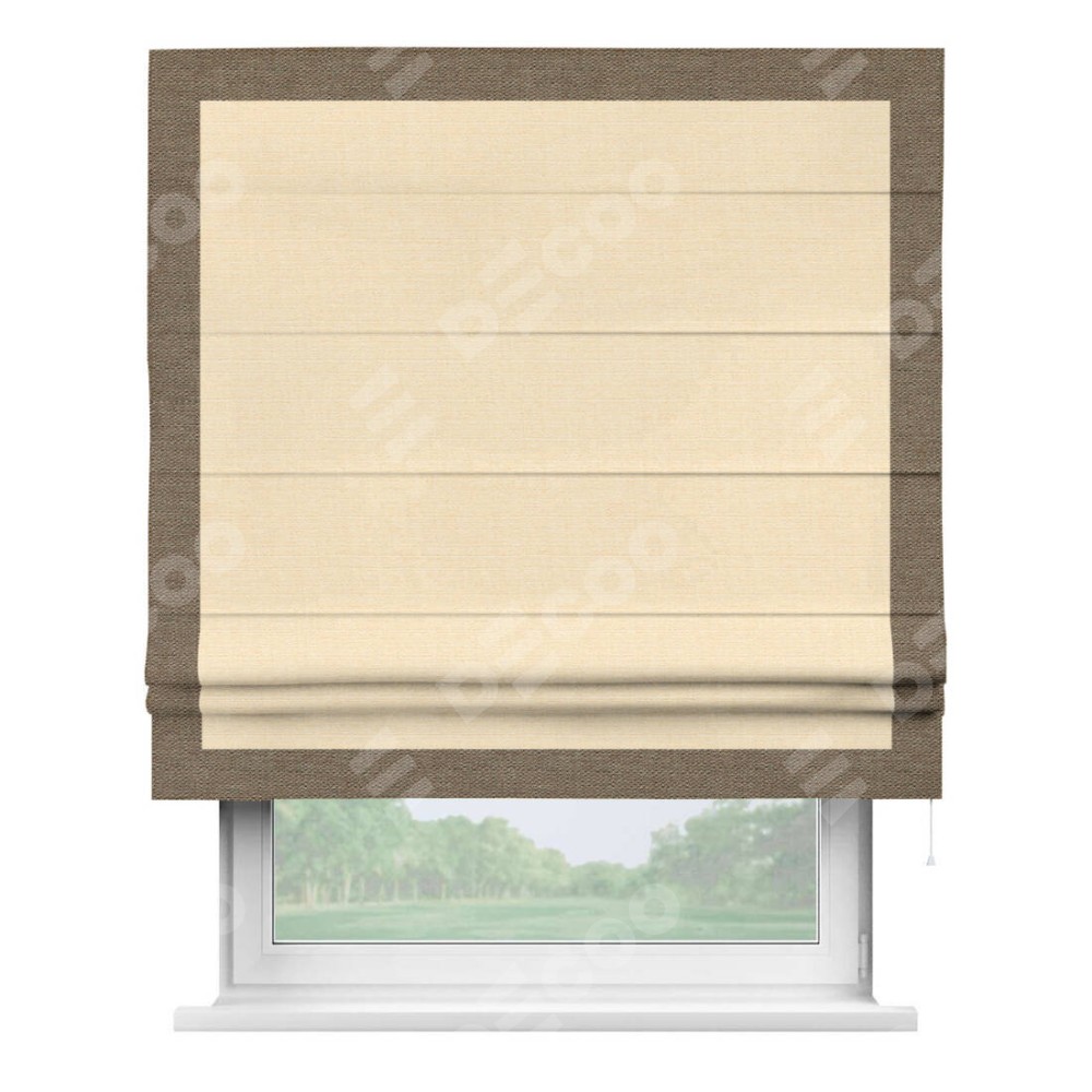 Римская штора «Кортин» с кантом Чесс, для проема, выполнена в ткани лён бежевый