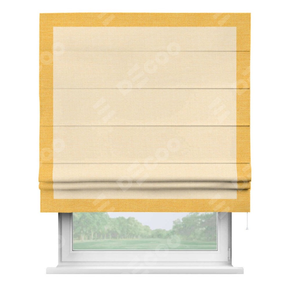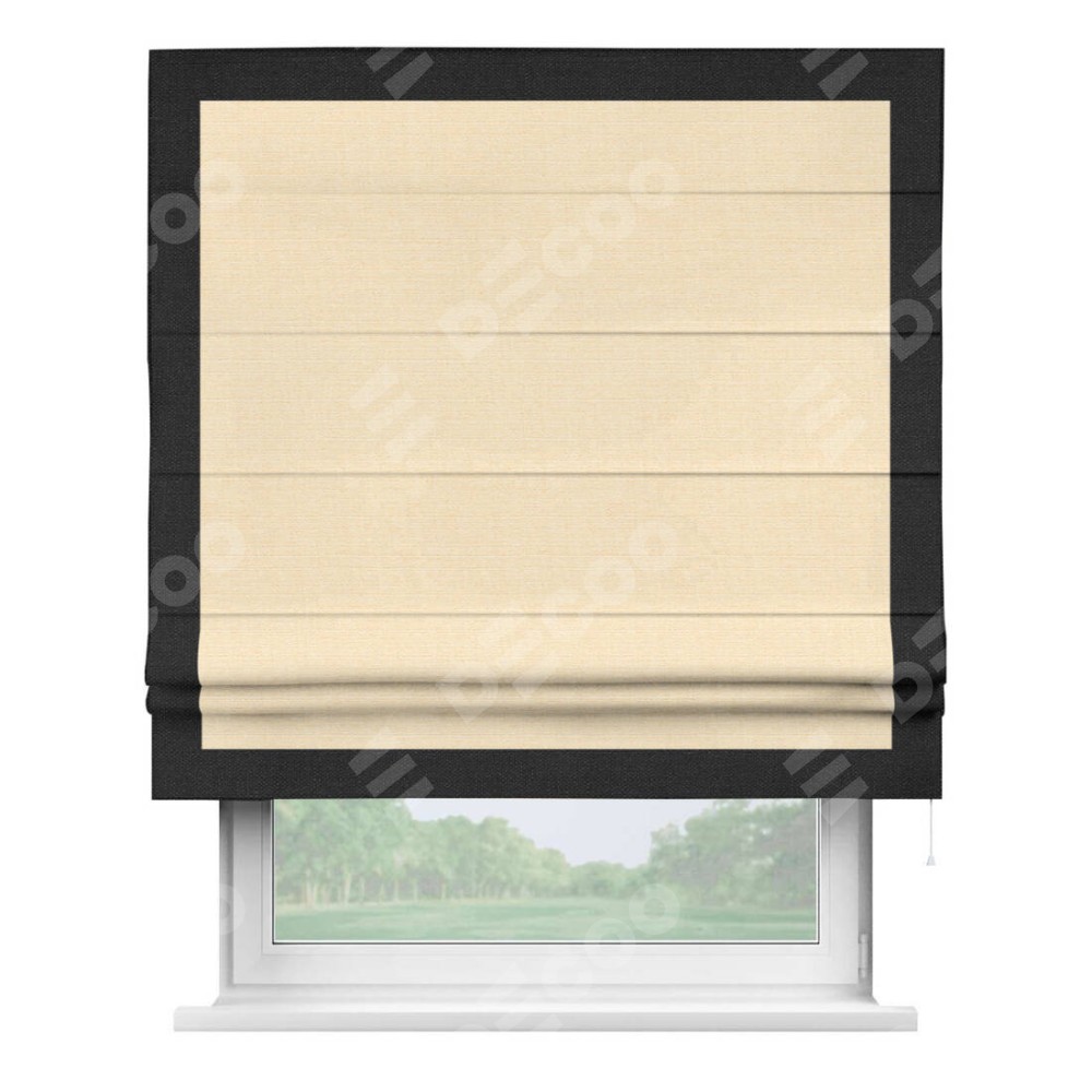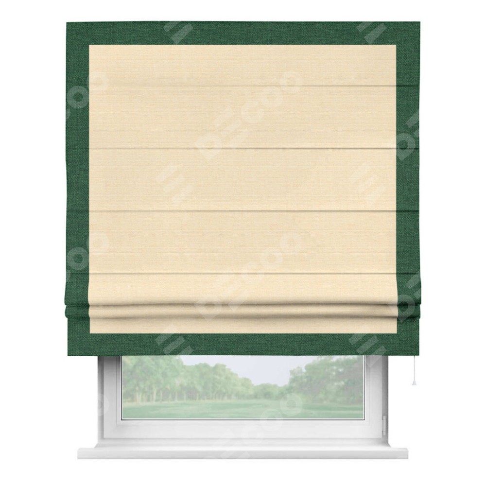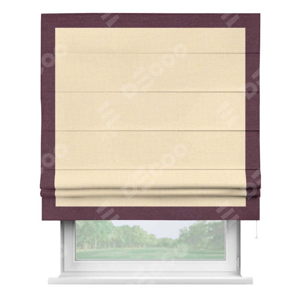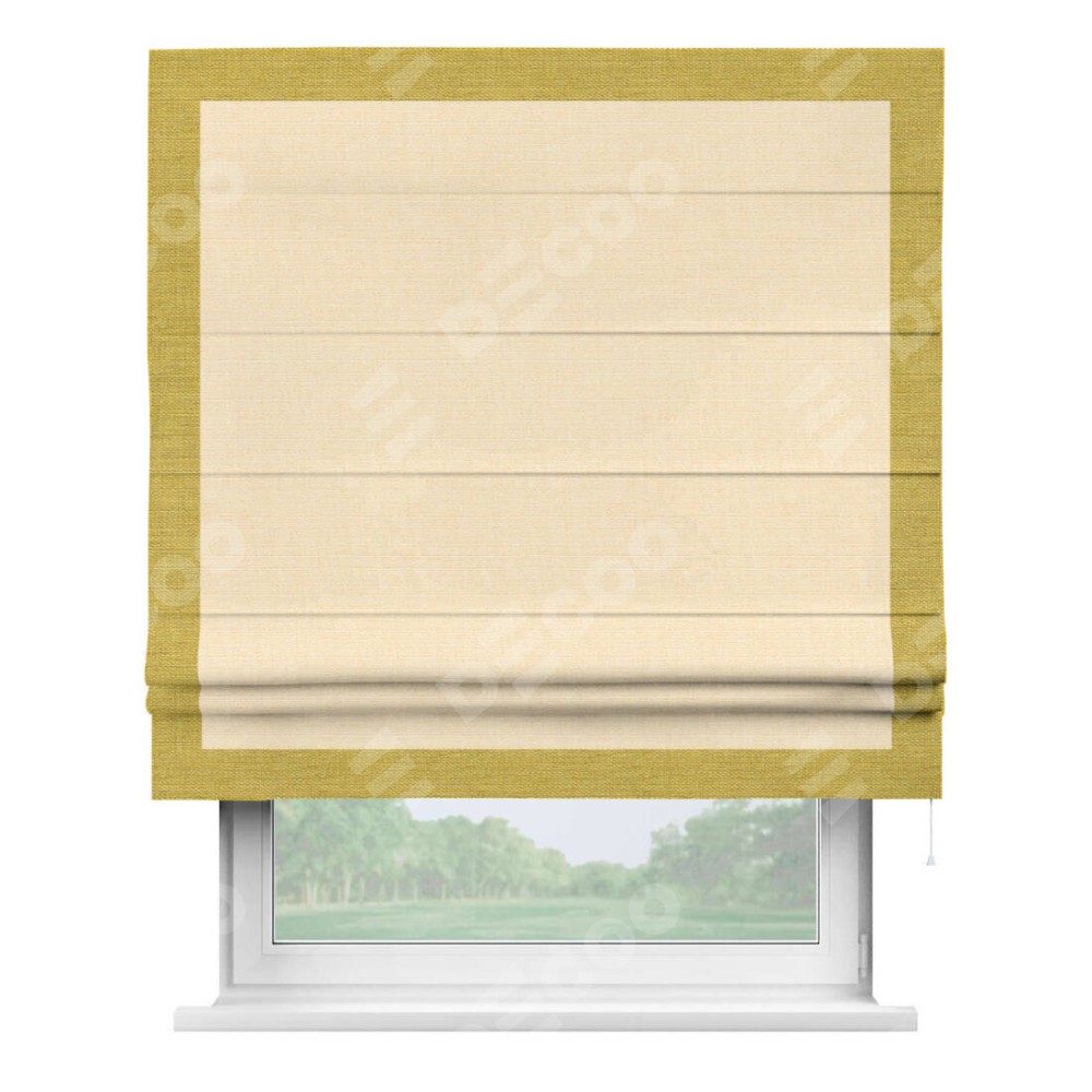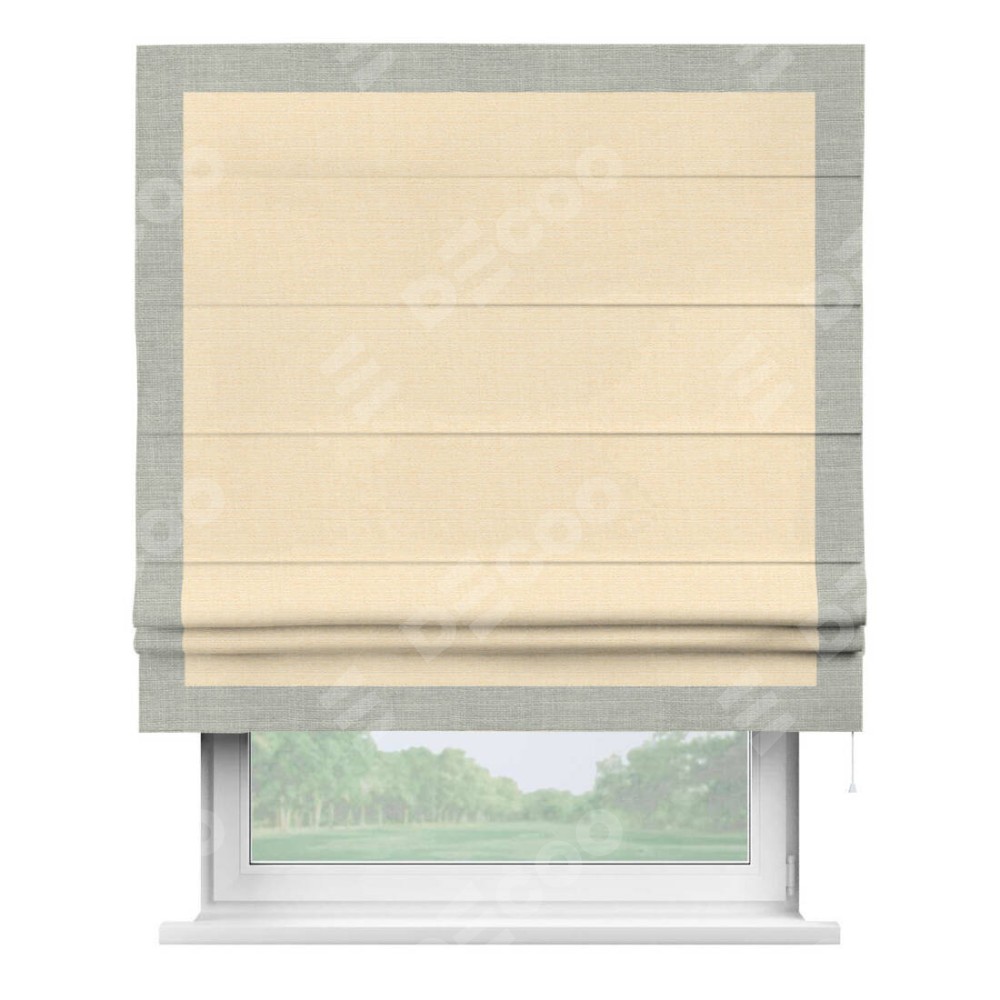 Римская штора «Кортин» с кантом Чесс, для проема, выполнена в ткани лён бежевый