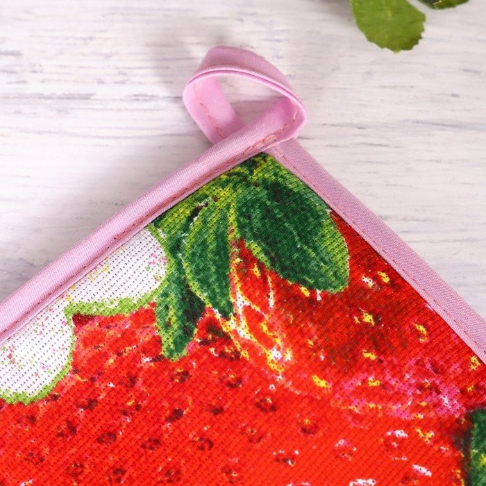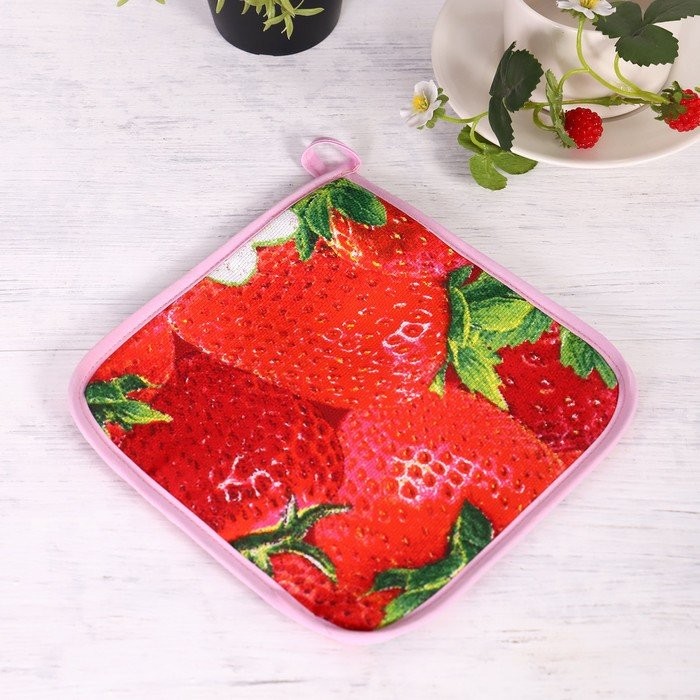 Прихватка 18×18 см, Клубника, рогожка, 100% хлопок