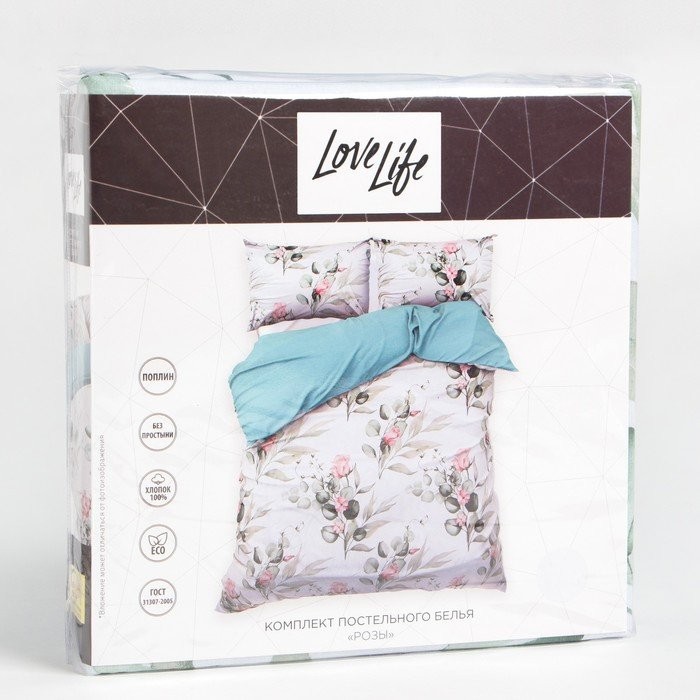 КПБ 1,5 сп LoveLife «Розы»: пододеяльник 150*217см+наволочка 50*70см-1шт, поплин, 125г/м²
