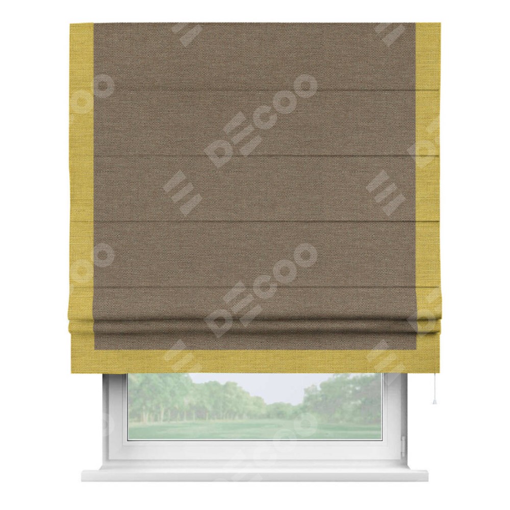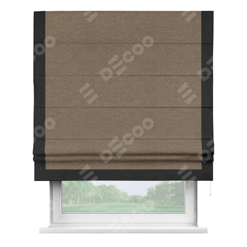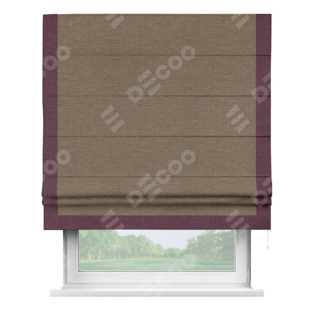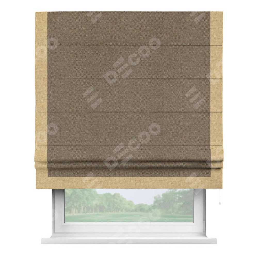 Римская штора производителя «Cortin», используется для проёма, пошита из ткани лён светло-коричневый, артикул 53434. Отделка шторы кантом «Виктория», ткань для канта используется из льна разной расцветки на выбор. Имеет универсальный механизм и подходит для монтажа: на потолок, на стену и в нишу.