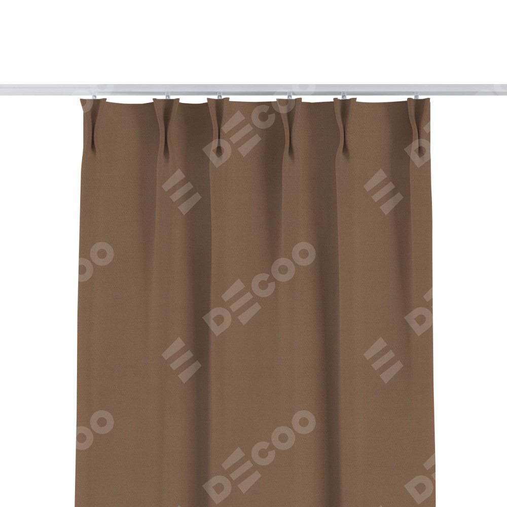 Комплект прямых штор, от производителя «Cortin», пошиты из ткани блэкаут однотонный коричневый, артикул ткани 88285. С изнаночной стороны в верхней части штор пристрачивается шторная лента с декоративными складками «Кустик». Для создания элегантных складок прямые шторы шьются по стандарту с коэффициентом 1:2 (на 100 см. ширины проёма 200 см. ширины ткани).
