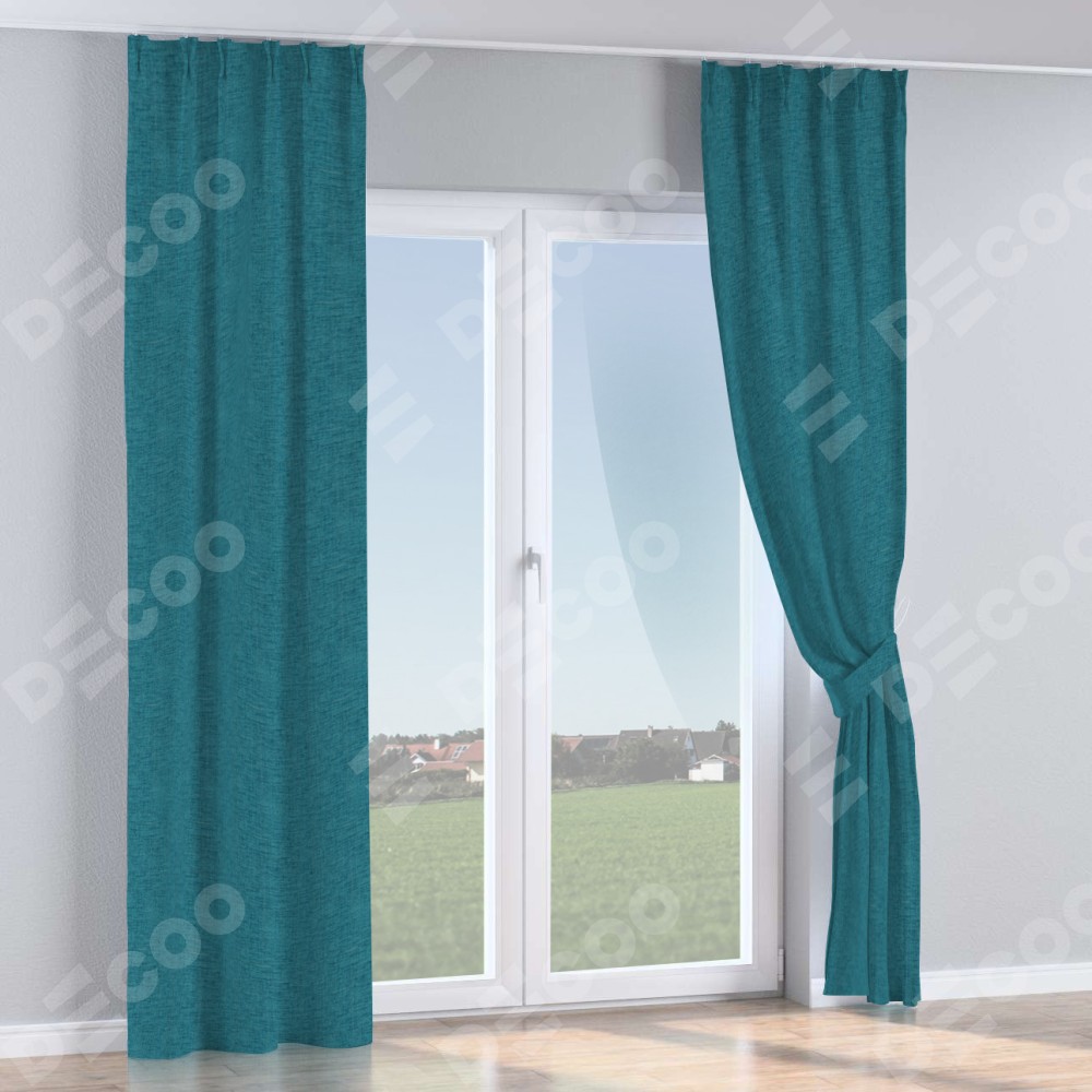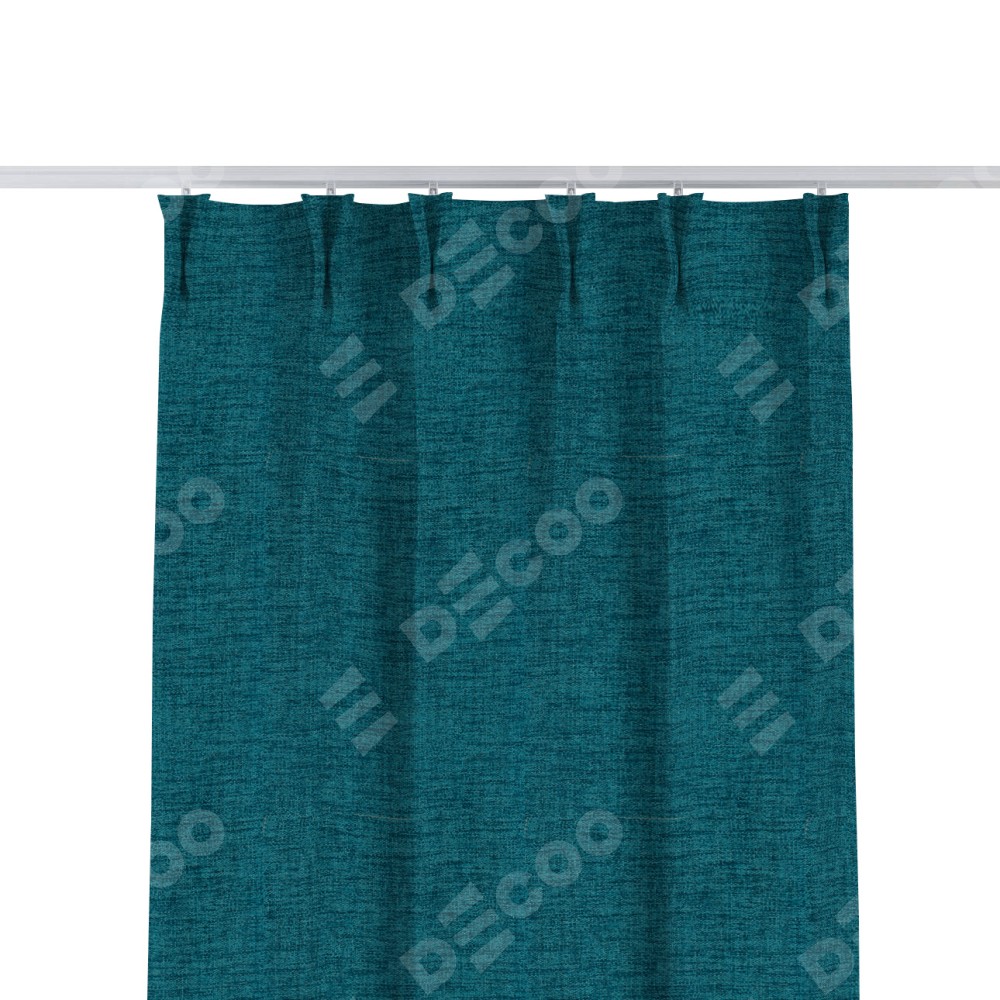 Комплект прямых штор, от производителя «Cortin», пошиты из ткани рогожка димаут синий, артикул ткани 80422. С изнаночной стороны в верхней части штор пристрачивается шторная лента с декоративными складками «Кустик». Для создания элегантных складок прямые шторы шьются по стандарту с коэффициентом 1:2 (на 100 см. ширины проёма 200 см. ширины ткани).