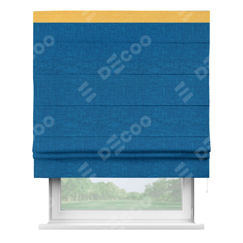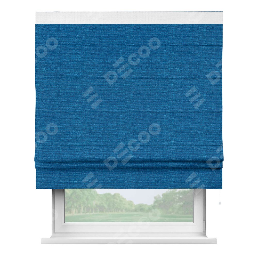 Римская штора «Кортин» с кантом Кинг, для проема, ткань лён синий