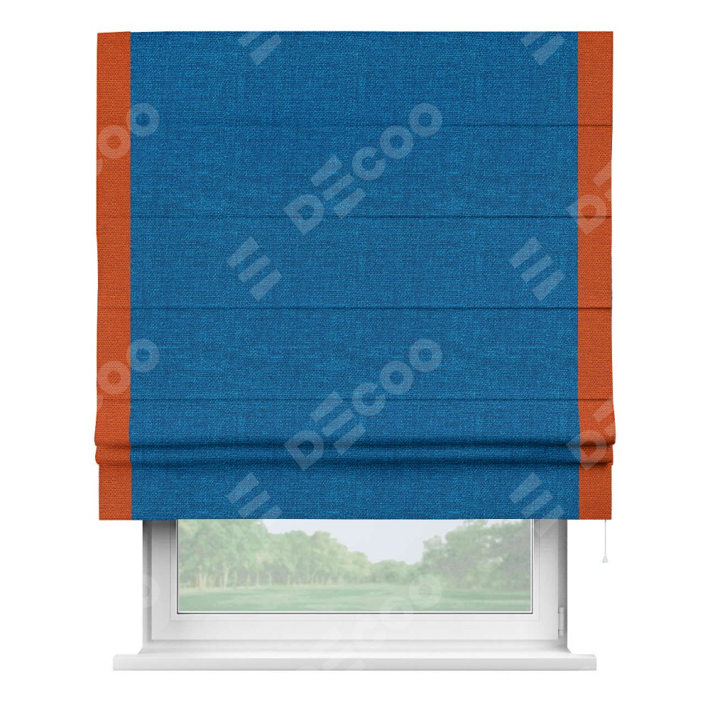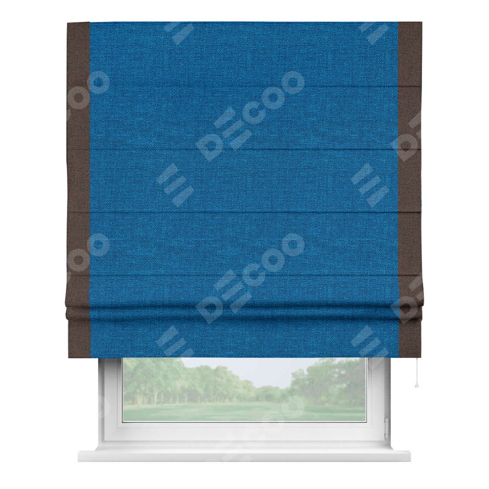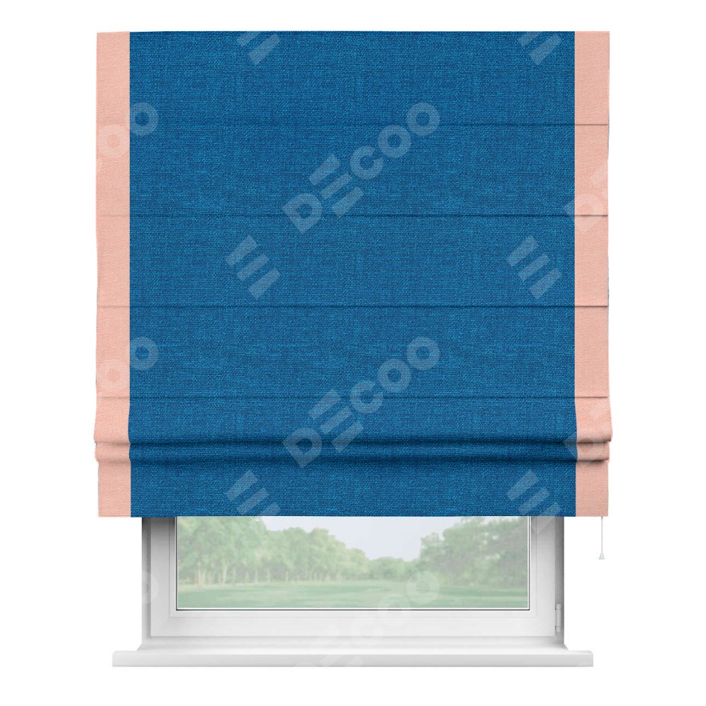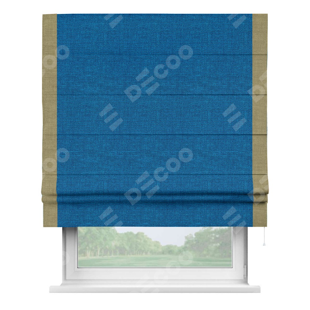 Римская штора «Кортин» с кантом Стрим Дуо, для проема, ткань лён синий