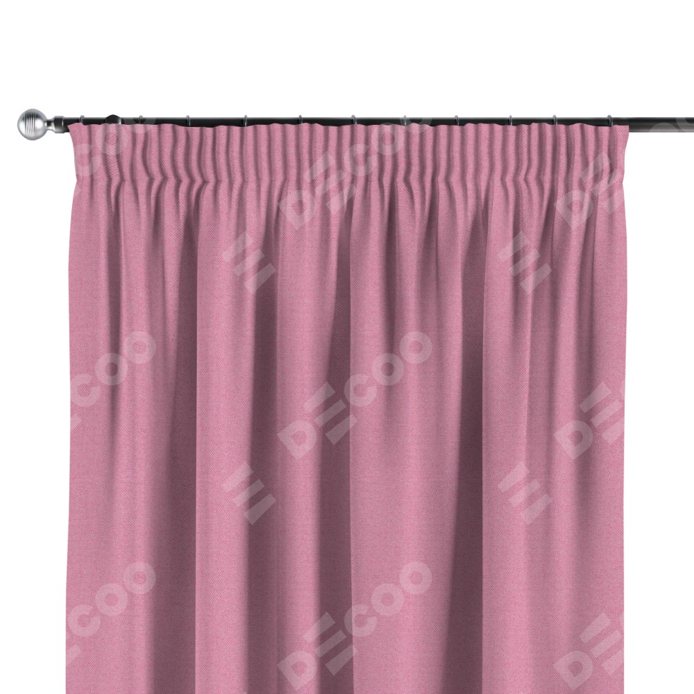 Комплект прямых штор, от производителя «Cortin», пошиты из ткани лён димаут розовый, артикул ткани 16257. С изнаночной стороны в верхней части штор пристрачивается шторная лента с декоративными складками «Карандаш». Для создания элегантных складок прямые шторы шьются по стандарту с коэффициентом 1:2 (на 100 см. ширины проёма 200 см. ширины ткани).