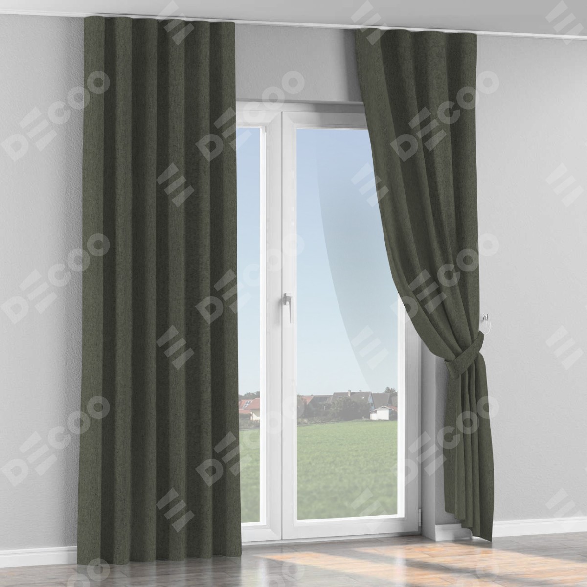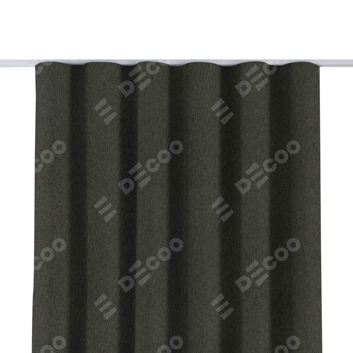 Комплект прямых штор, от производителя «Cortin», пошиты из ткани твид блэкаут тёмно-серый, артикул ткани 21587. С изнаночной стороны в верхней части штор пристрачивается шторная лента с декоративными складками «Волна». Для создания элегантных складок прямые шторы шьются по стандарту с коэффициентом 1:2 (на 100 см. ширины проёма 200 см. ширины ткани).