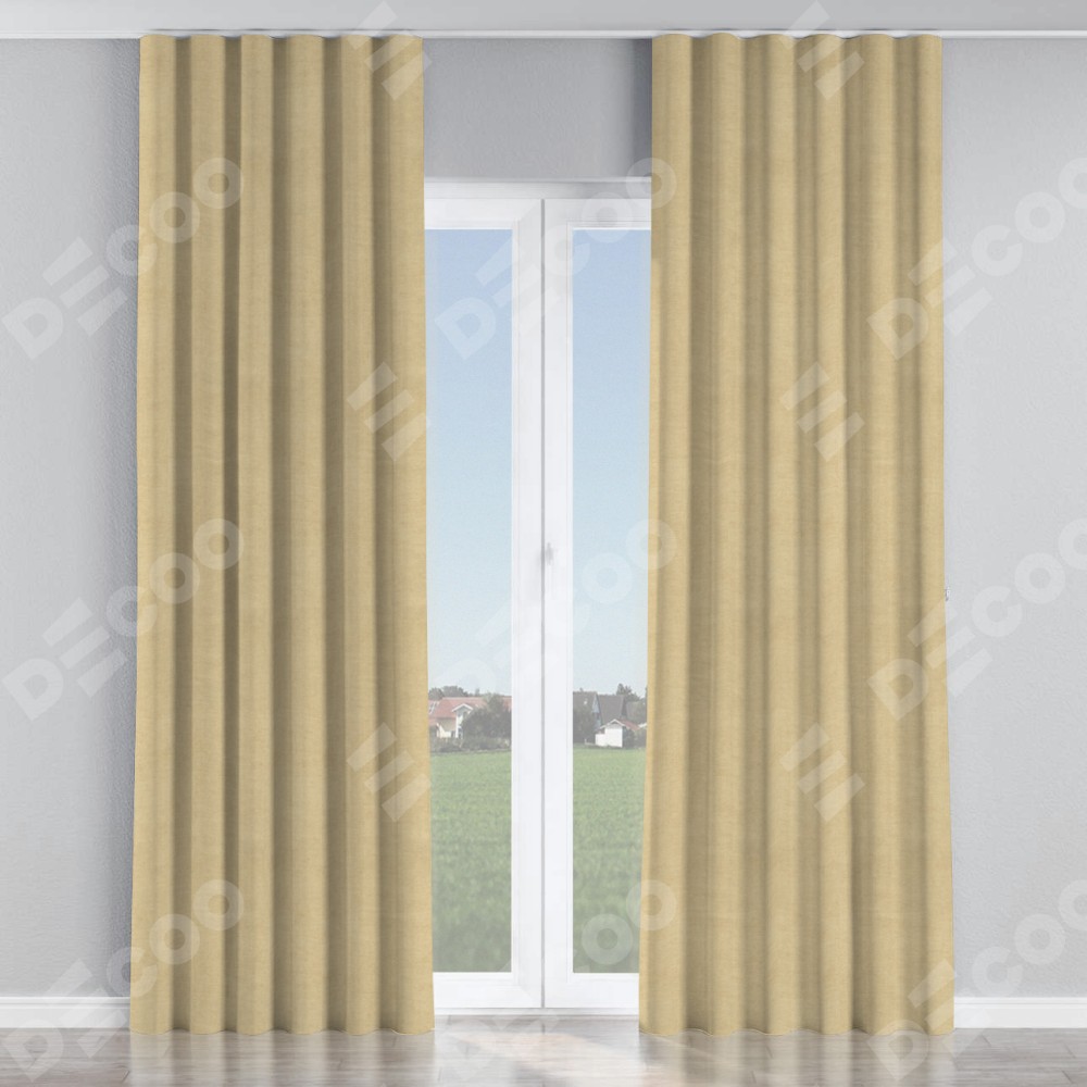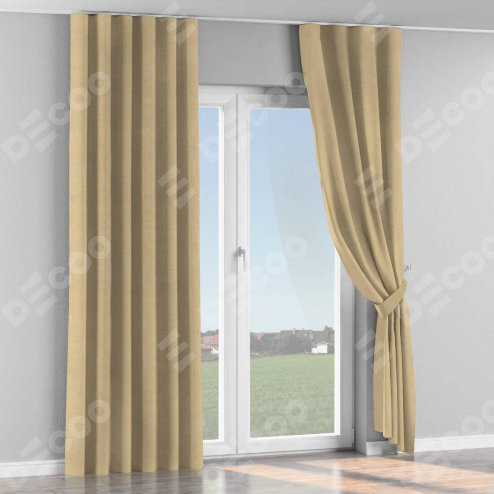 Комплект прямых штор, от производителя «Cortin», пошиты из ткани вельвет бежевый, артикул ткани 85538. С изнаночной стороны в верхней части штор пристрачивается шторная лента с декоративными складками «Волна». Для создания элегантных складок прямые шторы шьются по стандарту с коэффициентом 1:2 (на 100 см. ширины проёма 200 см. ширины ткани).
