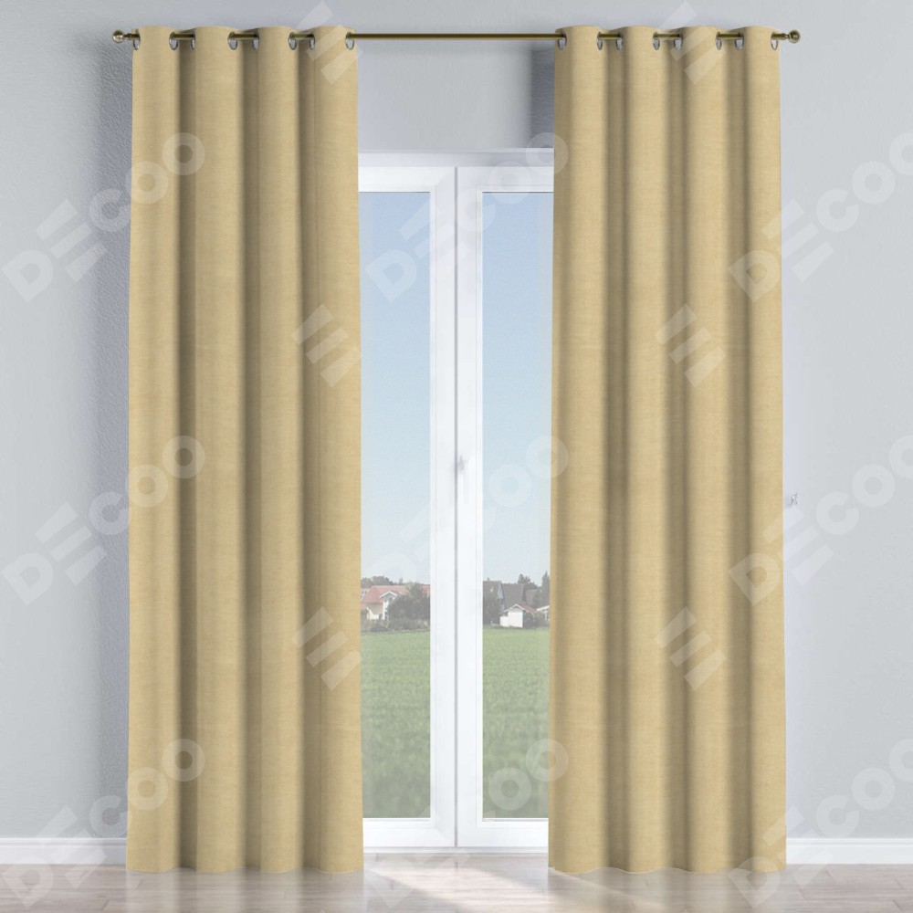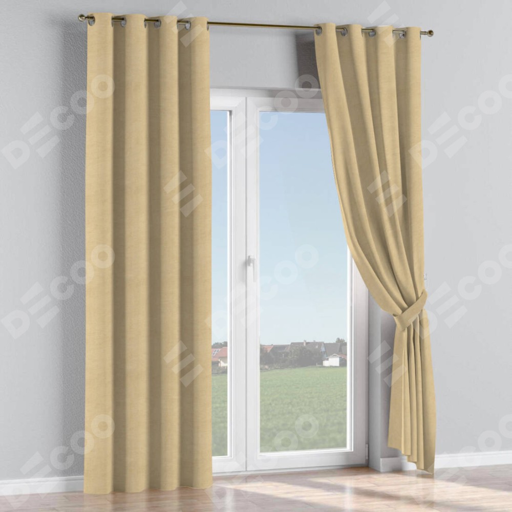 Комплект прямых штор, от производителя «Cortin», пошиты из ткани вельвет бежевый, артикул ткани 85538. Данная модель пошита на люверсах, комплектуется на выбор круглым карнизом и подходит для монтажа на стену или потолок. Прямые шторы на люверсах шьются по стандарту с коэффициентом 1/2 (на 100 см. ширины проёма 200 см. ширины ткани), отличительным преимуществом данной модели является простой способ монтажа. Достаточно повесить ее на трубу и штора готова!