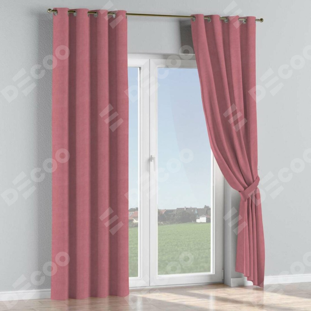 Комплект прямых штор, от производителя «Cortin», пошиты из ткани вельвет брусника, артикул ткани 85550. Данная модель пошита на люверсах, комплектуется на выбор круглым карнизом и подходит для монтажа на стену или потолок. Прямые шторы на люверсах шьются по стандарту с коэффициентом 1/2 (на 100 см. ширины проёма 200 см. ширины ткани), отличительным преимуществом данной модели является простой способ монтажа. Достаточно повесить ее на трубу и штора готова!