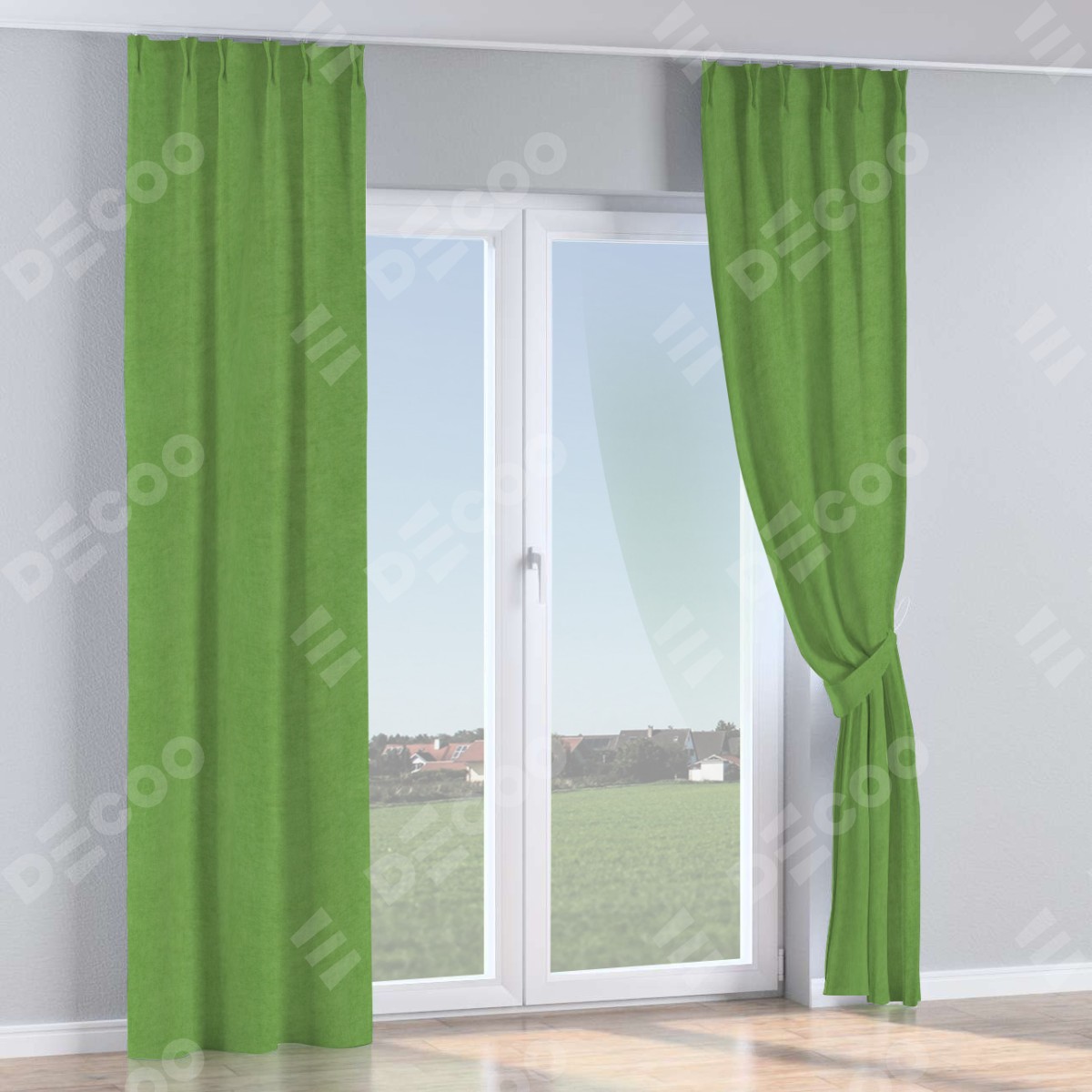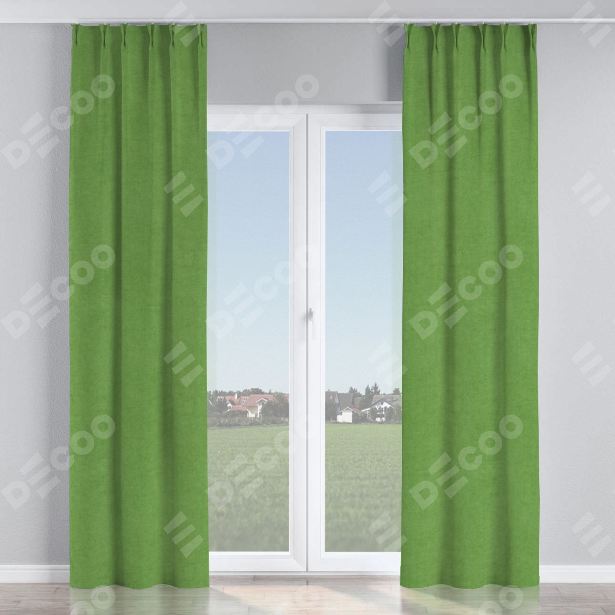 Комплект прямых штор, от производителя «Cortin», пошиты из ткани вельвет салатовый, артикул ткани 87072. С изнаночной стороны в верхней части штор пристрачивается шторная лента с декоративными складками «Кустик». Для создания элегантных складок прямые шторы шьются по стандарту с коэффициентом 1:2 (на 100 см. ширины проёма 200 см. ширины ткани).