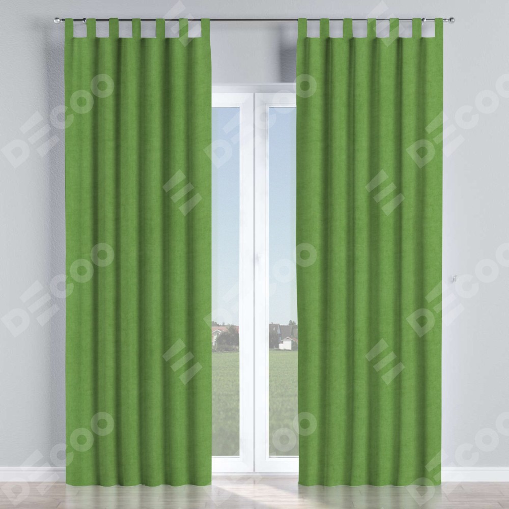 Комплект прямых штор, от производителя «Cortin», пошиты из ткани вельвет салатовый, артикул ткани 87072. Данная модель пошита на петлях, комплектуется на выбор круглым карнизом и подходит для монтажа на стену или потолок. Прямые шторы на петлях шьются по стандарту с коэффициентом 1/2 (на 100 см. ширины проёма 200 см. ширины ткани), отличительным преимуществом данной модели является простой способ монтажа. Достаточно повесить ее на трубу и штора готова!