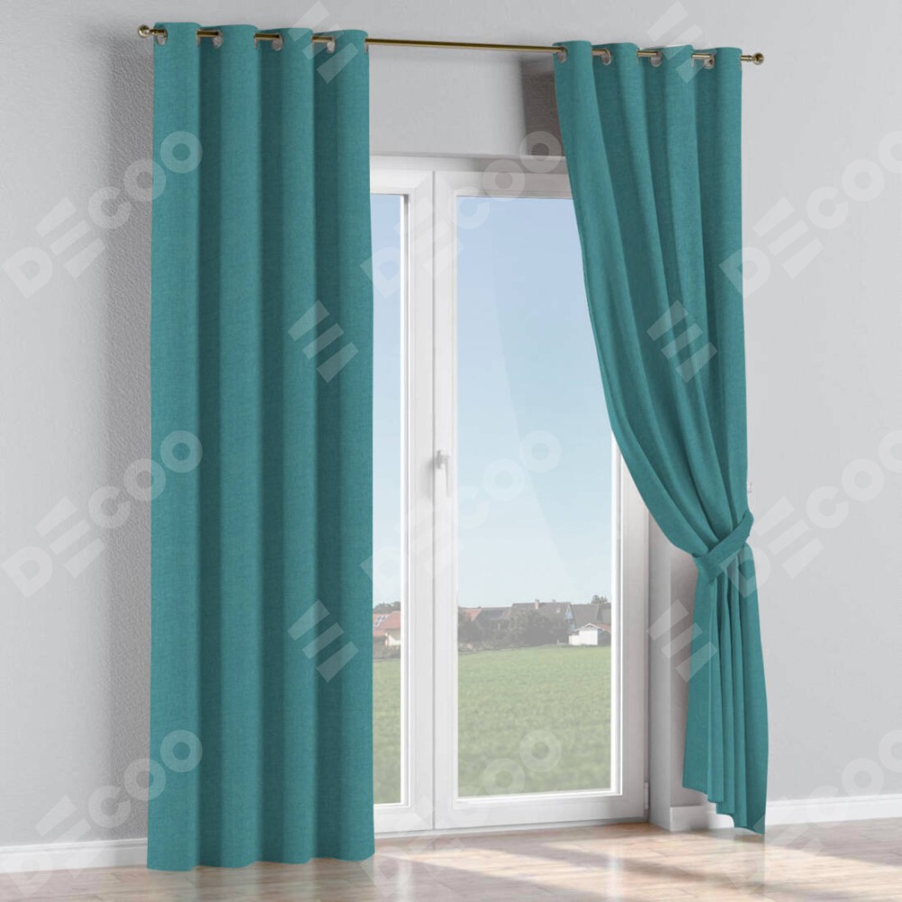 Комплект прямых штор, от производителя «Cortin», пошиты из ткани лён бирюзовый, артикул ткани 53436. Данная модель пошита на люверсах, комплектуется на выбор круглым карнизом и подходит для монтажа на стену или потолок. Прямые шторы на люверсах шьются по стандарту с коэффициентом 1/2 (на 100 см. ширины проёма 200 см. ширины ткани), отличительным преимуществом данной модели является простой способ монтажа. Достаточно повесить ее на трубу и штора готова!