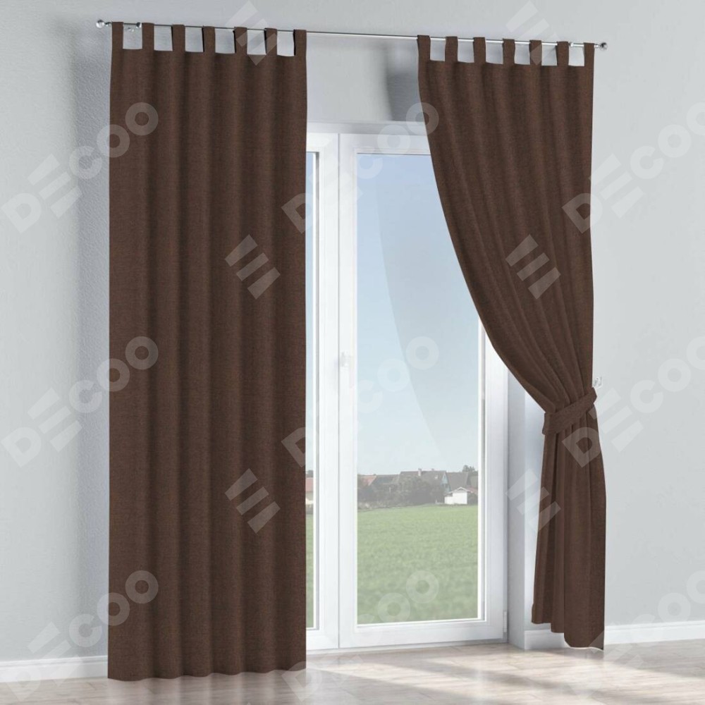 Комплект прямых штор, от производителя «Cortin», пошиты из ткани лён коричневый, артикул ткани 53443. Данная модель пошита на петлях, комплектуется на выбор круглым карнизом и подходит для монтажа на стену или потолок. Прямые шторы на петлях шьются по стандарту с коэффициентом 1/2 (на 100 см. ширины проёма 200 см. ширины ткани), отличительным преимуществом данной модели является простой способ монтажа. Достаточно повесить ее на трубу и штора готова!