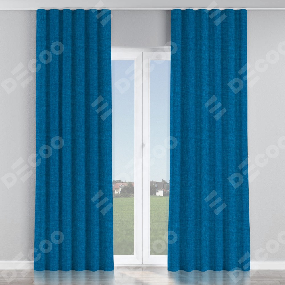 Комплект прямых штор, от производителя «Cortin», пошиты из ткани лён синий, артикул ткани 63742. С изнаночной стороны в верхней части штор пристрачивается шторная лента с декоративными складками «Волна». Для создания элегантных складок прямые шторы шьются по стандарту с коэффициентом 1:2 (на 100 см. ширины проёма 200 см. ширины ткани).